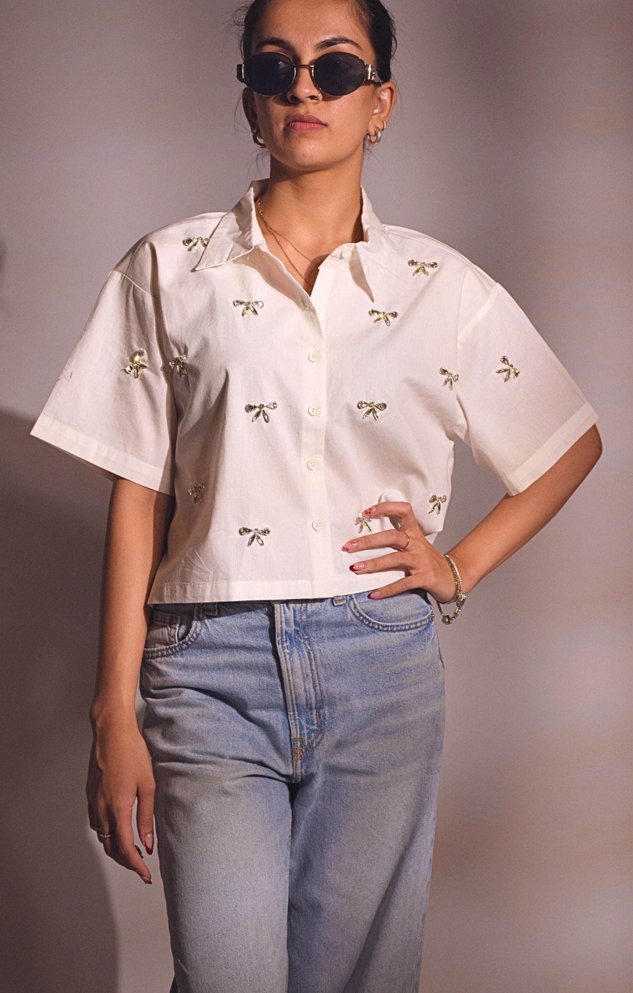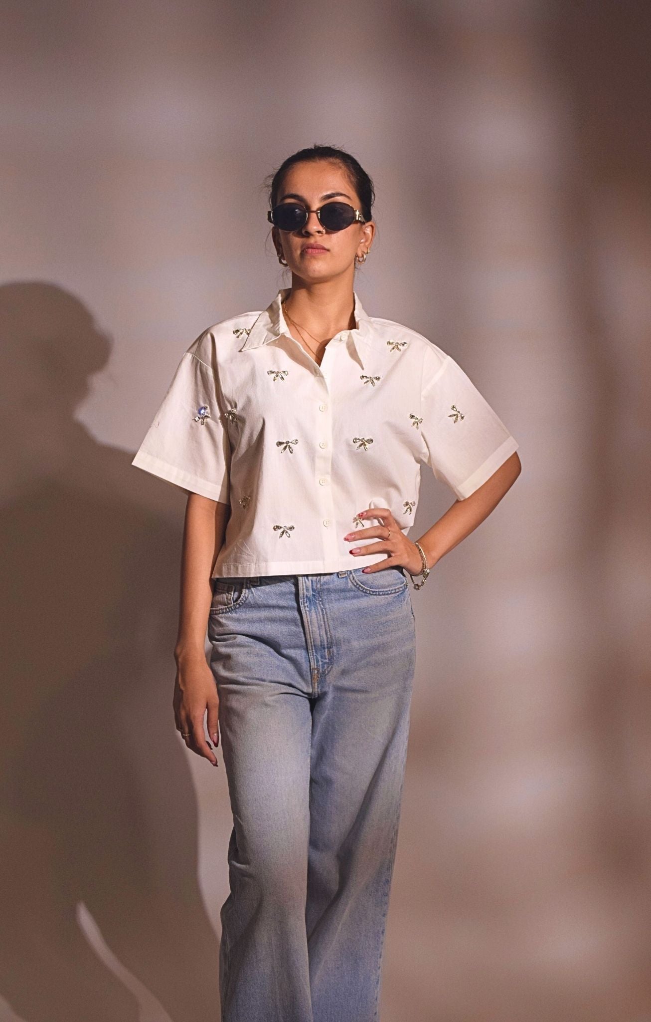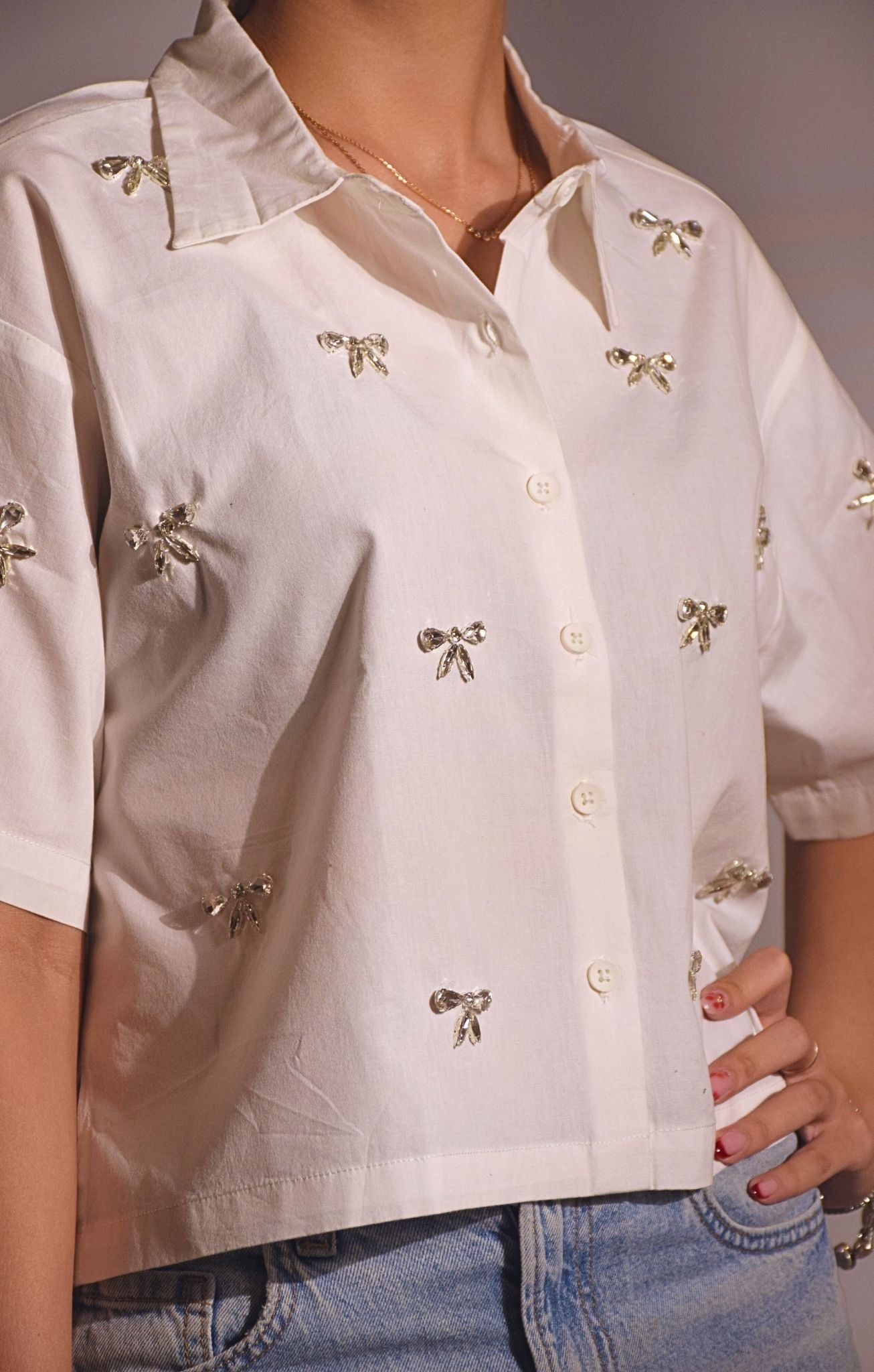 Bow Bliss Embellished Handcrafted Crop Shirt
