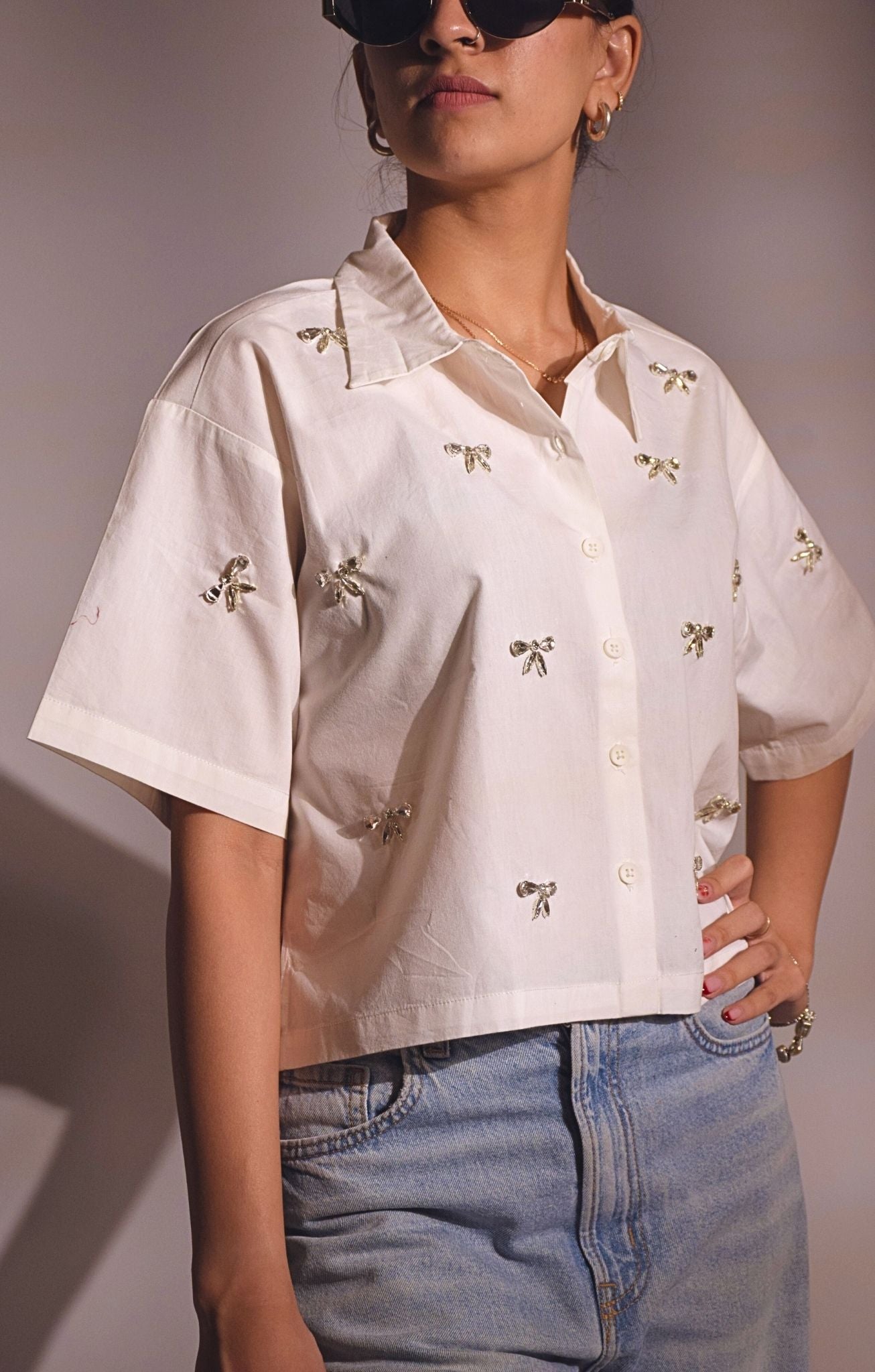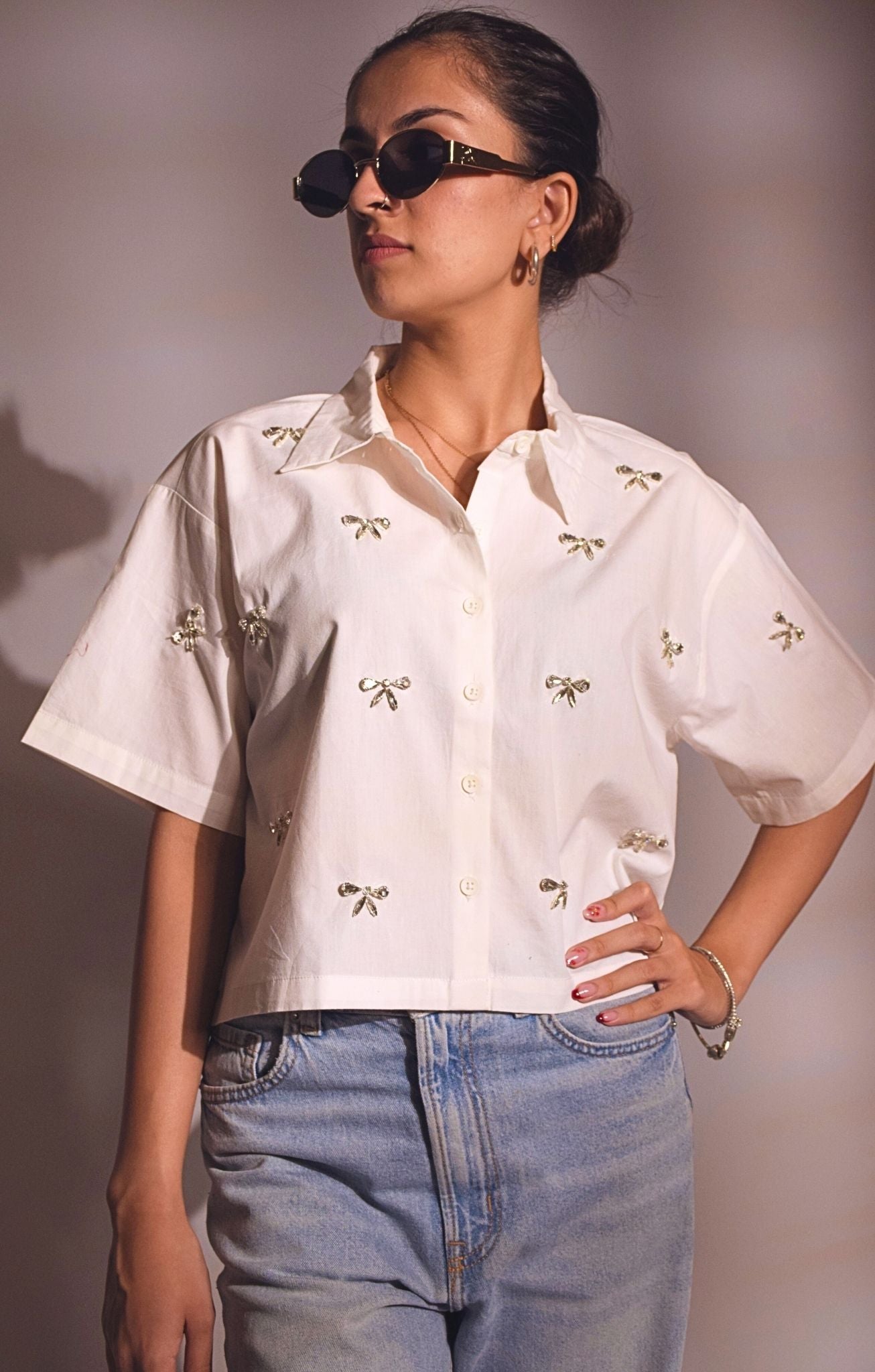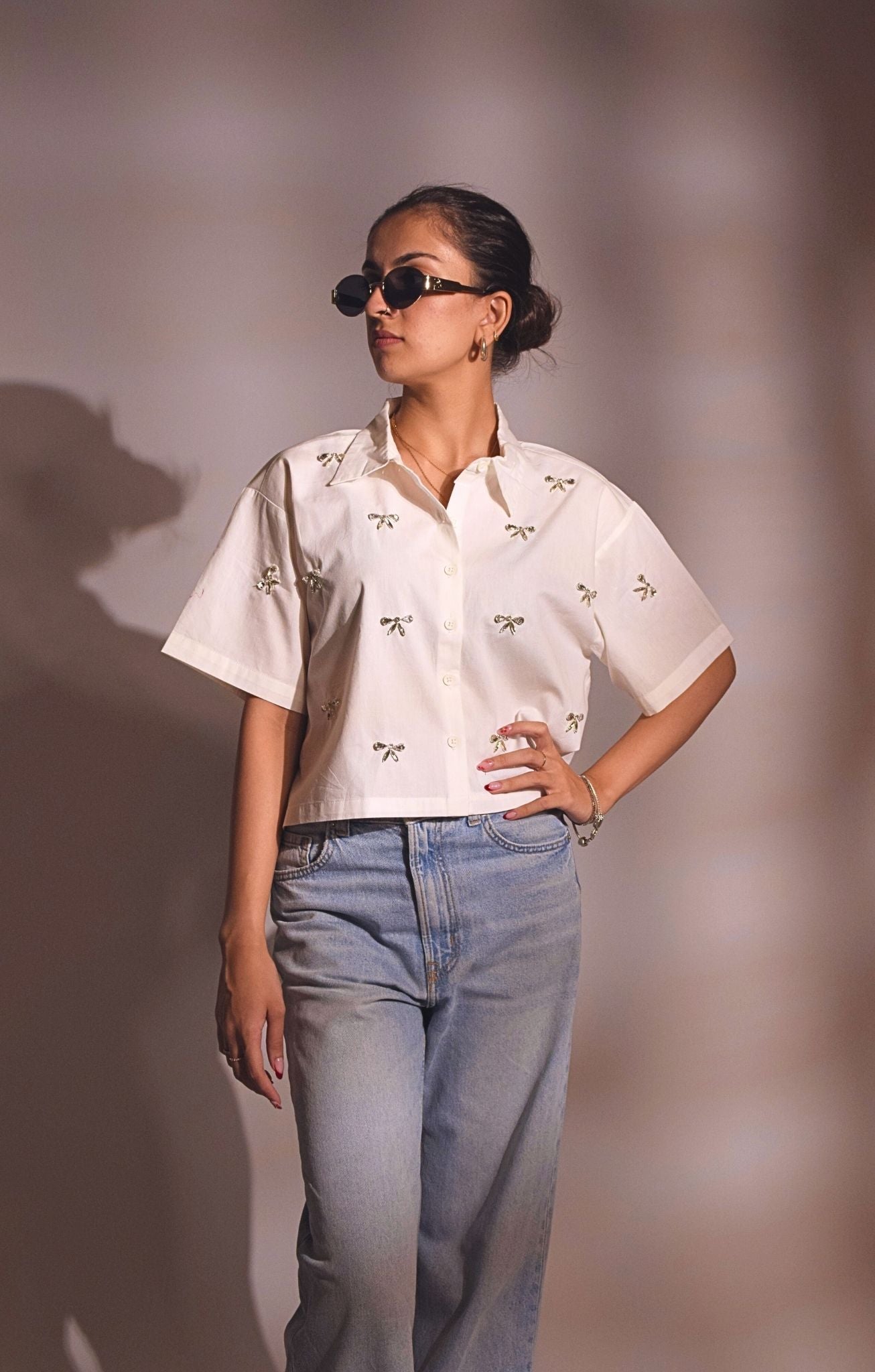 Bow Bliss Embellished Handcrafted Crop Shirt