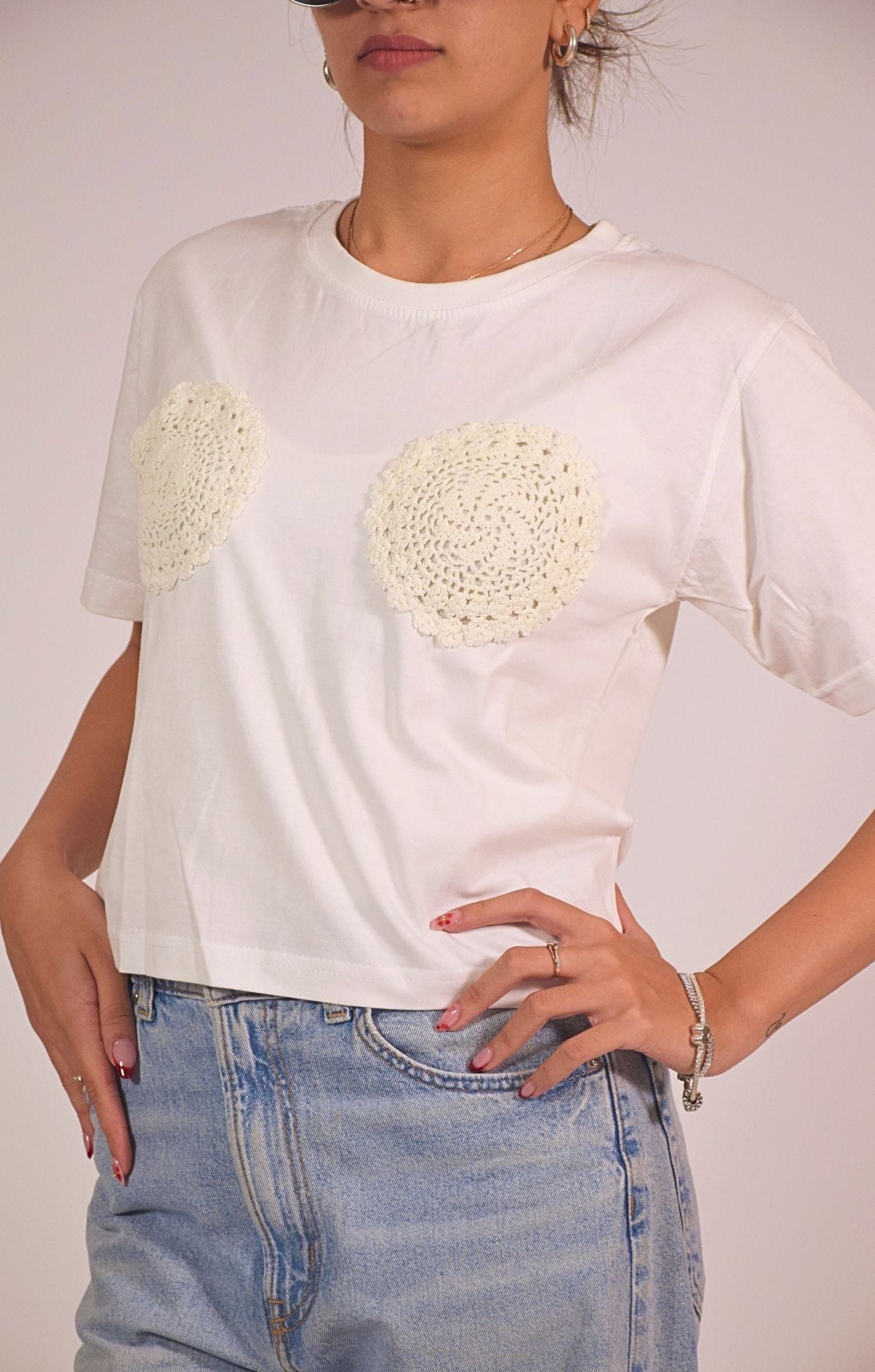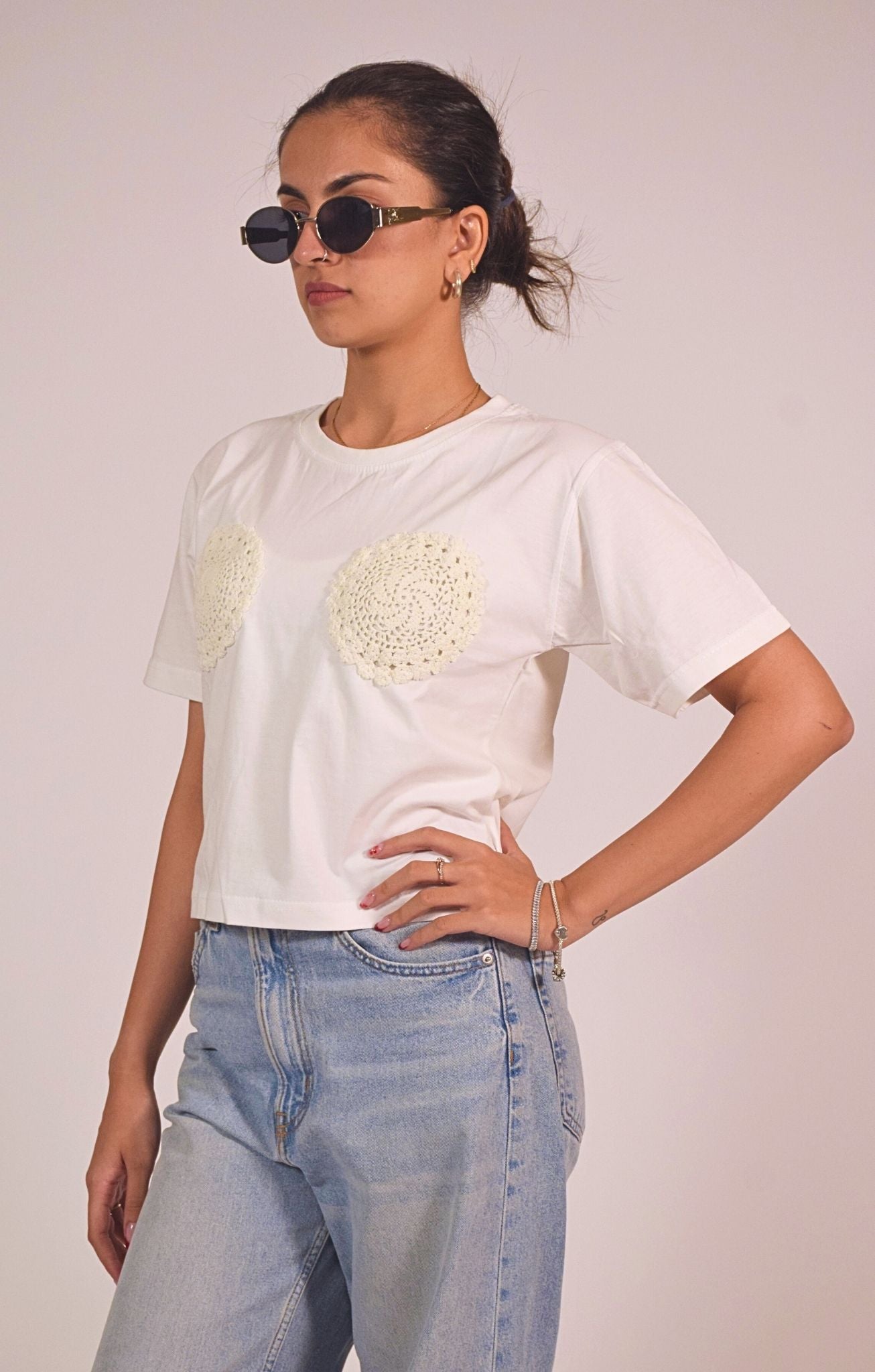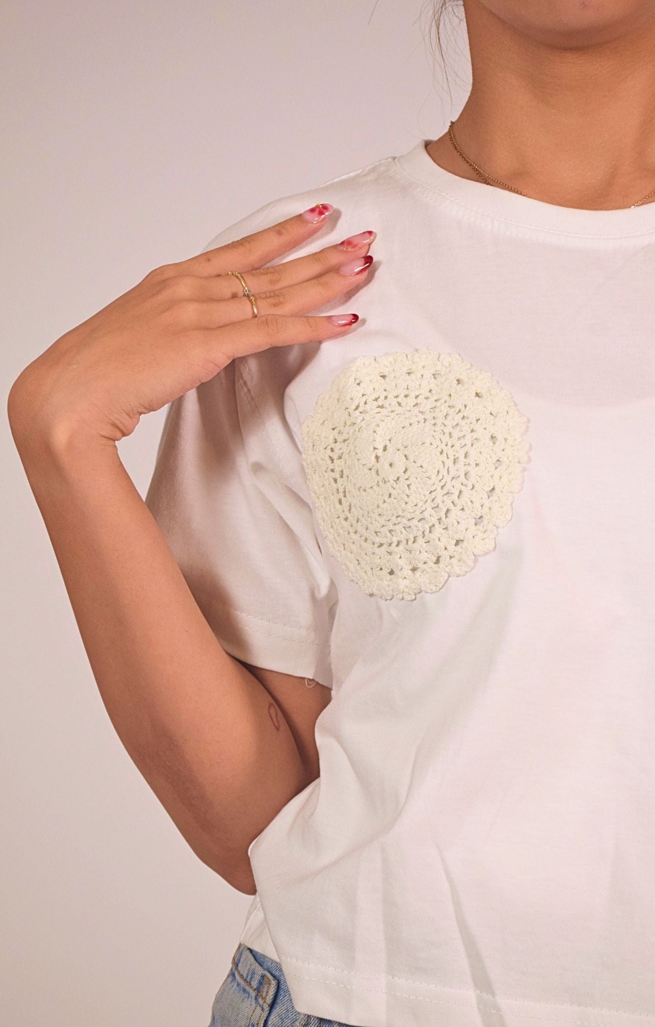 Quirky Crochet Embellished Handcrafted Crop T Shirt