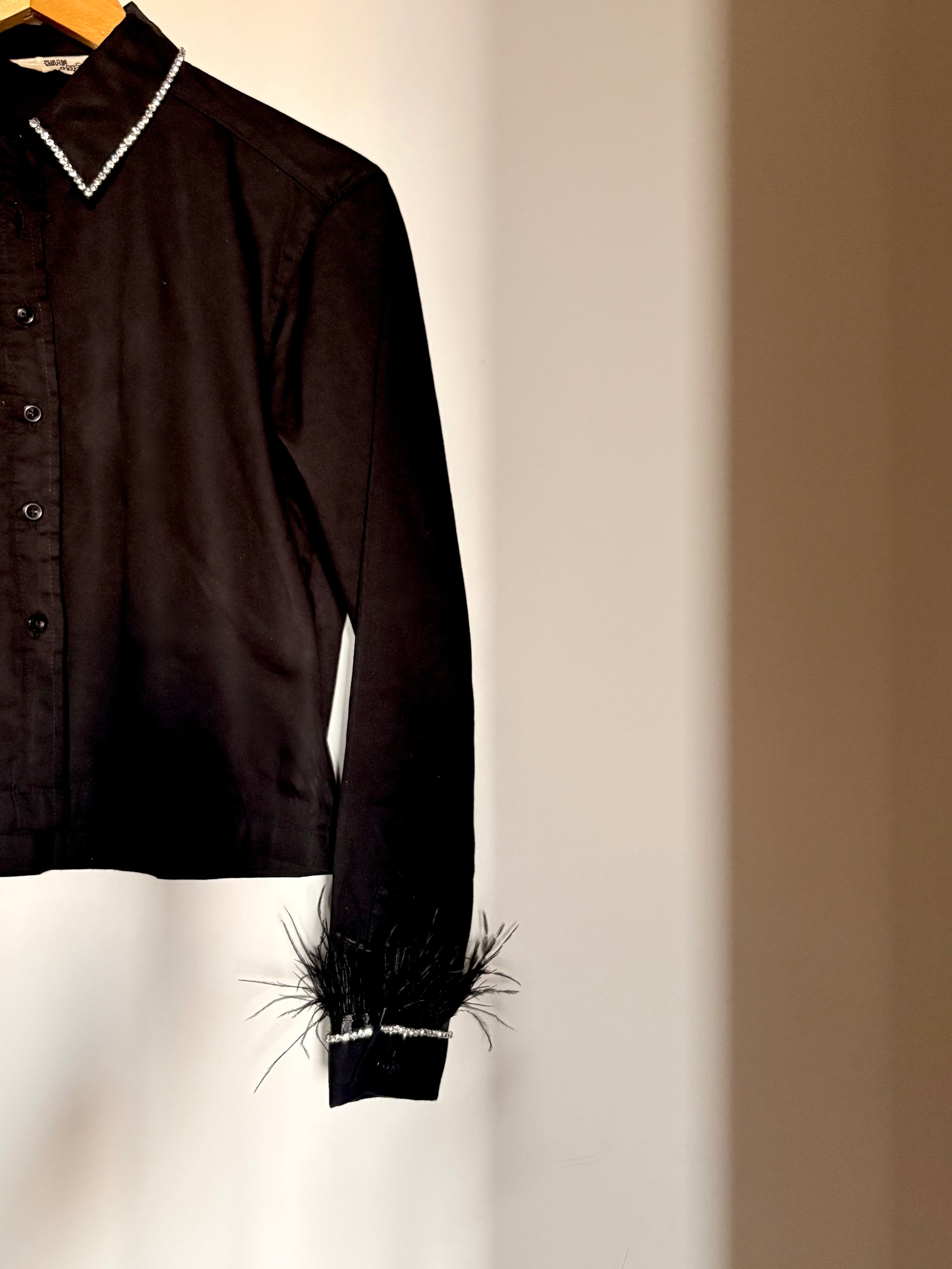 Rhine feather embellish handcrafted crop shirt